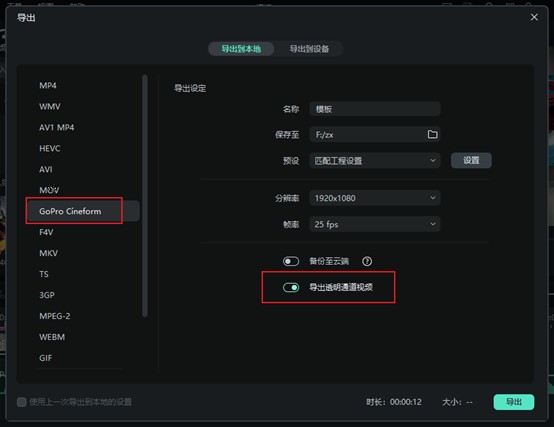 格式,再开启【导出透明通道视频】选项后导出即可。