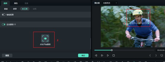 - 在预览窗口中将跟踪框移到追踪目标上,然后点击开始跟踪;