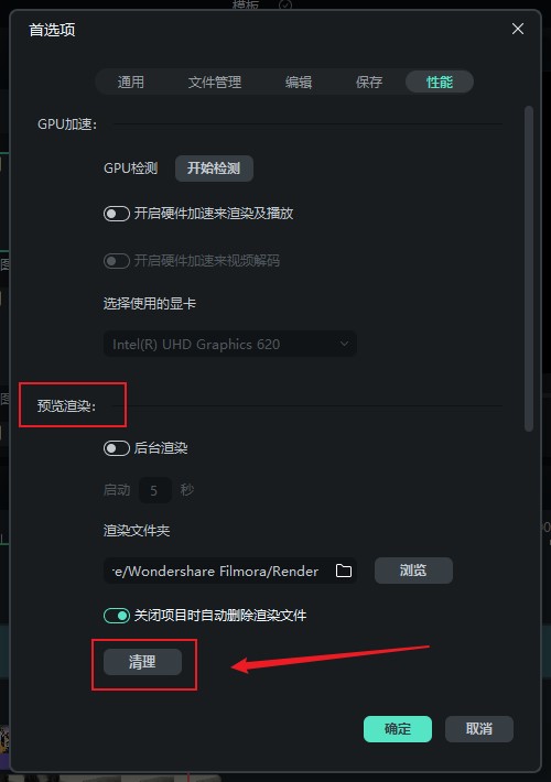 - 请新建空白项目,然后点击界面左上方点击文件-首选项-性能,找到预览渲染下的渲染文件夹,点击其下的【清理】按钮,再重新打开项目看是否可以正常渲染。