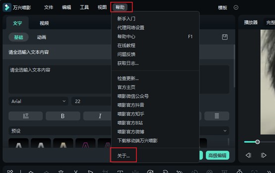 您可以点击软件编辑界面顶部【帮助】-【关于】,以查看当前的具体版本号;