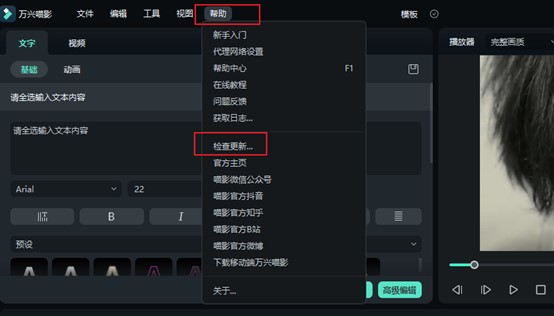 此外,可以点击软件编辑界面顶部【帮助】-【检查更新】,来检查是否有可更新的版本。